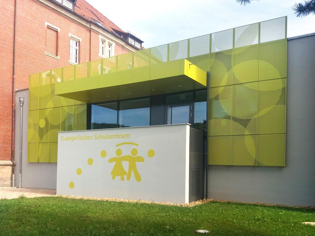 De 2016 à 2017, l'association scolaire de Pirna a transformé les bâtiments existants en un complexe scolaire moderne. En plus de la modernisation des bâtiments existants, les bâtiments disposeront d'une nouvelle entrée en tôle perforée. Le nouveau bâtiment est le lien entre les deux bâtiments existants et doit servir de hall d'entrée et de salle de réunion pour tous les espaces scolaires.
