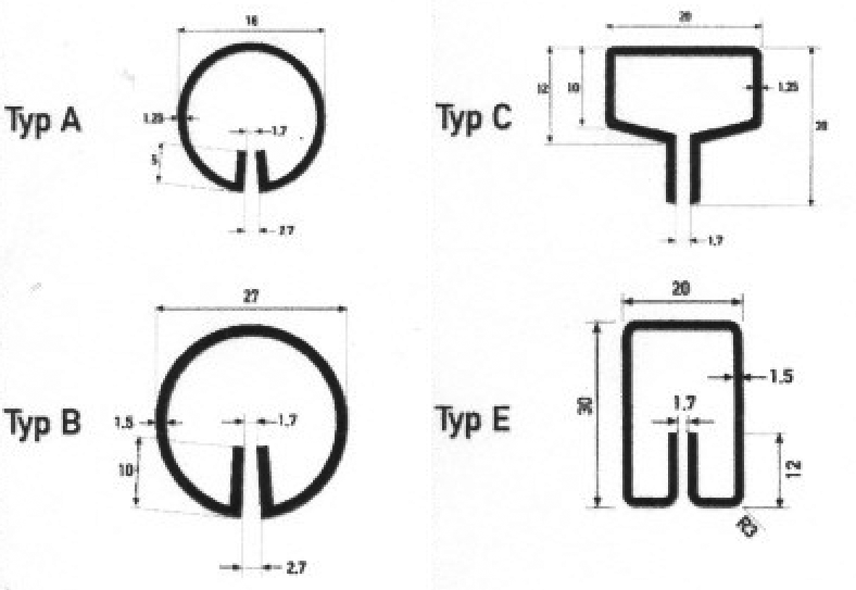 Nous distinguons 4 types de profilés d'encadrement en termes de forme et de structure. Nous vous livrons le profil souhaité en fonction de l'utilisation et de vos goûts personnels. Variations sur demande. Contactez-nous et nous vous fournirons le profil que vous souhaitez.
